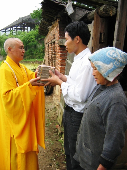 本港訊 (吳如雄) 8日,羅漢山森林公園新峰寺香黔法師來到平寨村,親手將募集的第一筆資金交到患病教師王永貴弟弟手中。據悉,王永貴是凱里漁洞小學教師,自去年初被診斷為尿毒癥以來,在凱里市教育部門及社會各界的幫助下,目前王永貴已到浙江醫治。由于其家境貧寒,其醫療費個人支付部分所需5萬元資金尚未籌足,為此,從9日起,新峰寺特在寺院設立功德箱,專門為王永貴捐資。