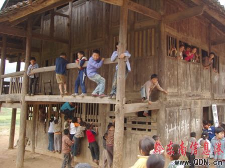 記者看到,該舊教學(xué)樓的教室里光線昏暗,小學(xué)生們正在低著頭看書。下課后,二樓的部分學(xué)生們又趴在斷了木條的窗戶上向下張望嬉笑,十分危險(xiǎn)。舊教學(xué)樓已經(jīng)使用了 20 年,早已成了危房,但學(xué)生沒有地方上課了,只好搬進(jìn)來,“要不,耽誤孩子們的前途可怎么辦哪?” 老校長無奈地說。