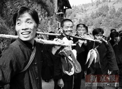 苗族文化的中心 交通 從貴州省會貴陽到 賓館:淡季標間100元左右、節慶時很難找到房旅社:10—40元/床位農戶接待點:一般10元—20元/人,有的農戶家中15—25元就能包吃。 飲食 縣城餐館:一般人均10元就能吃到當地地道的名吃。“酸湯魚”是苗族較出名的風味名菜。 ■日常生活 苗年殺雞宰鴨接待遠方的客人。 初到西江的人會立即被雷公山下西江千戶苗寨的壯觀折服,層層疊疊依山而建的吊腳樓像是突然間闖進游客的眼簾,這世界上最大的苗寨名不虛傳。西江由12個自然村組成,現有1200多戶人家,6500多人中苗族人口超過90%.苗疆綿延千里,村寨難以計數,但沒有一個能像西江千戶苗寨那樣擁有獨特的地位,因為西江是中國農耕文化與苗族文化的縮影。 肅穆的祭祖儀式 本次苗年節活動,西江千戶苗寨作為分會場安排了許多節目,西江也就成為了 最讓人感動的是,11月11日西江12個村的所有寨老穿著整齊的服裝在祭祀祖先的儀式后,來到蘆笙場,唱起流傳千年的苗族古歌,古歌的內容取材于苗族歷史上的大遷徙,雖然現場許多人都聽不懂苗語,但依然被那一份莊嚴肅穆所感染。生活在西江的人,祖祖輩輩都稱自己是蚩尤的后代子孫。他們堅信自己就是蚩尤在中原戰敗后南遷的部落后裔。在西江人的生活中對祖先的崇敬與膜拜占據了極高的地位,在各種節慶中,吟唱古歌中內容,許多是戰敗后向南遷徙的痛苦記憶,寨老們跳起的舞蹈也是要將死者的靈魂引導去祖先生活過的地方。 西江千戶苗寨的長街宴。 長街宴和在苗家做客 最熱鬧的要數長街宴,擺長街宴的那天,每家都把自己的小方桌放在大街上并成長長的一排占滿了整條街,從家中挑來做好的各種菜肴,用土碗土盤將桌子擺得滿滿的。每家的主人守在自家的一段上,不停地招呼路過的人們就座,不管是否認識,一坐下了就像一家人一樣,男主人會立即為客人盛飯盛菜,女主人會敬上自家釀的苗家米酒。一邊唱歌一邊喝酒,不時還有別桌的人串臺過來,香甜的米酒很快就將客人送入了醉鄉。 這次苗年節為西江旅游帶來不少收益,在西江有大約30家苗家有客房,每家床位在10—30張。 苗年節期間全部客滿,質樸的苗家人依然按照平時的價格收費,每人吃住在15-25元/天。有不少沒找到床位的游客還被許多不從事接待的苗家邀到家中住宿,客人要付錢時會被主人真誠拒絕,他們認為在苗年節接待遠客是件榮耀的事。 采寫/本報記者郭鐵流