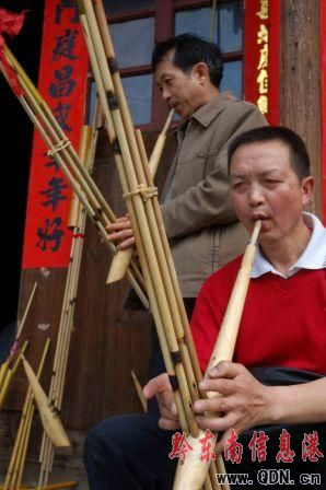 凱里市舟溪鎮新光村是一個遠近聞名的苗族“蘆笙村”,該村制作民族樂器蘆笙已有400多年歷史,幾乎家家戶戶都會制作。自上世紀90年代起,村民們利用農閑時間制作的蘆笙遠銷日本、美國及東南亞等國家和地區。僅2006年一年,全村制作蘆笙5萬余把,銷售總收入超過150萬元。如今,村民們制作蘆笙都是接訂單制作,不愁銷路,每天前來村寨提貨的外地商戶絡繹不絕,村民足不出戶靠制作蘆笙走上了致富路。