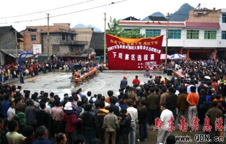 圖為下司鎮海選現場及畬族同胞在跳《粑槽舞》時的情景(趙龍騰 攝)