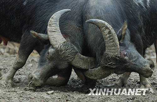 10月4日,在貴州劍河舉行的仰阿莎文化節“牛王”爭霸賽中,兩頭斗牛進行激烈角逐。