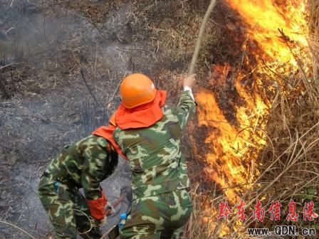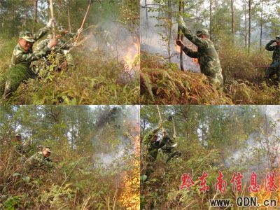 3月2日17時40分,一中隊接到黔東南州經濟開發區求援,稱銅鼓村東山發生山火災,開發區已投入人力進行撲救,但火勢在風力的作用下過于猛烈,希望一中隊官兵前往支援。接到求助后,中隊迅速出動2臺消防車,14名官兵緊急趕赴現場。到達現場后,火勢在風力的作用下顯得越發猛烈,現場指揮員對地形分析后決定,集中火力打殲滅戰,戰士們得到命令后,迅速向明火挺進,官兵們憤怒地撲打著火焰,撲滅一處又往另一處趕,當官兵撲滅一個山頭的大火時,另一個山頭又燃起漫天的火光,官兵顧不得停下喘口氣,又繼續沿著火帶撲擊,而這時的山坡坡度已達80度,官兵艱難的山體上爬行,臉上、手上、腿上,到處都是被山刺刮傷的血痕,但官兵沒又任務怨言,因為撲救火災,挽救人民的生命財產安全是消防衛士的光榮使命,是每名戰士的神圣責任。