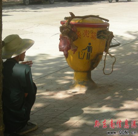 將欲出售的肉,掛在垃圾桶上賣,您見過嗎?