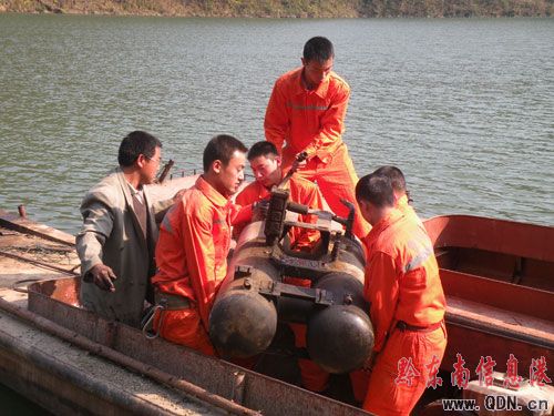 隨后指揮部決定下水打撈,全體官兵將1000多斤重的氧氣機(jī)分拆為三部分,齊心協(xié)力將氧氣機(jī)抬下10多米高的河壩船上,并配合工作人員將氧氣機(jī)安裝完畢。一切打撈工作準(zhǔn)備就緒,兩名消防官兵與打撈隊(duì)蹬上了打撈救援船上,開(kāi)始深入湖中偵察打撈,經(jīng)天柱白市打撈隊(duì)潛水員先后六次下水中打撈搜尋,搜尋未果,只找到了側(cè)翻的工程車,車門打開(kāi),沒(méi)有發(fā)現(xiàn)被困人員。由于此時(shí)天色很晚,且潛水衣在水中被車體劃開(kāi)裂口,無(wú)法再進(jìn)行打撈,打撈工作暫時(shí)告一段落。