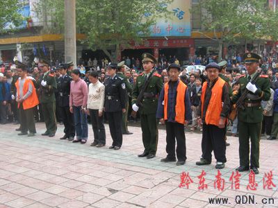 本港訊 自雪凝災害后開展嚴防和打擊森林火災犯罪行為以來,臺江縣公、檢、法系統按照上級部門的安排和部署,經過公安機關的偵查、逮捕,檢察院起訴,4月16日中午1點,利用縣城趕集日人群眾多的機會,在縣公安局門前的丁字路口廣場,依法召開了公審、公判大會。在公審、公判大會上,法官根據過火面積與犯罪嫌疑人的認罪、悔罪態度,本著懲戒本人,教育他人的原則,依法宣判了邰昌明、王文貴、邰四紅、張妹往、唐汪翁等五名失火犯罪行為人三個月到三年不等的有期徒刑或拘役,在社會上起到了很好的教育和震懾作用。