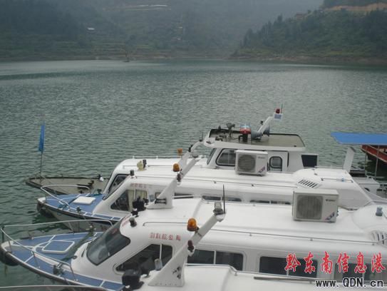 圖為三板溪庫區柳川碼頭整裝待發的高速客船