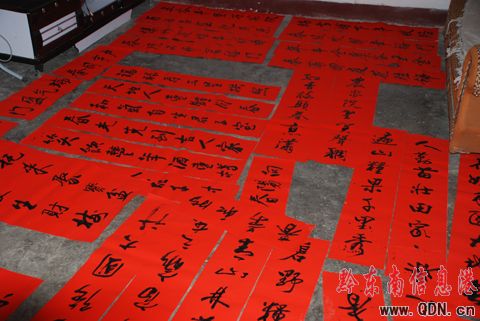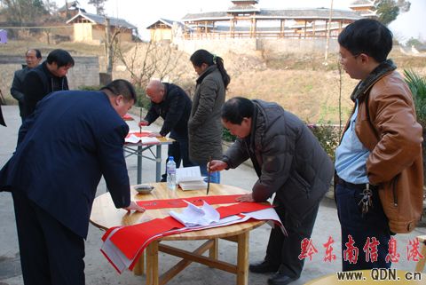 1月17日下午,陽光明媚,天清氣朗,凱里市文聯組織凱里地區書法家到龍場鎮石龍寨義務為老百姓寫春聯,受到當地村民一致好評。據介紹,從2006年開始,凱里市文聯每年新春都組織書法家到石龍寨為村民義務寫春聯,這一良好傳統已延續了4年。(王四錫 攝影報道)
