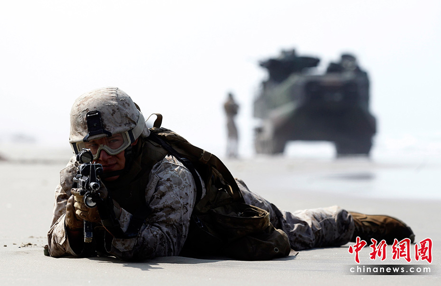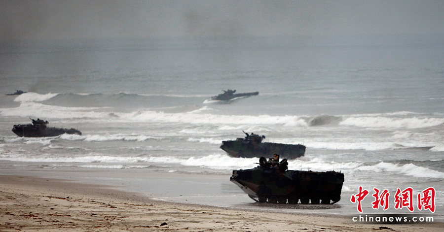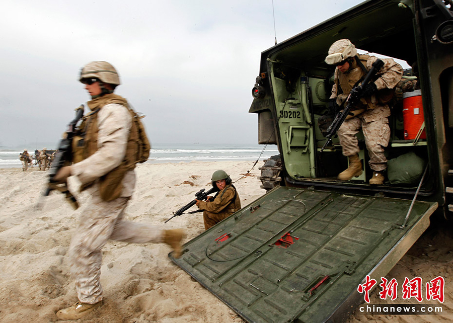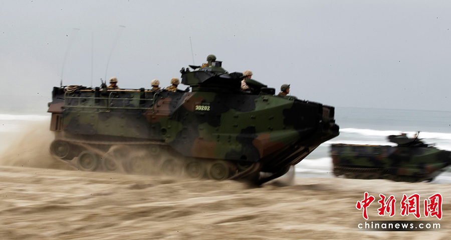 當地時間6月4日,約5000名水兵和陸戰隊員在美國加利福尼亞州舉行了代號為“黎明突擊”的搶灘登陸軍事演習。