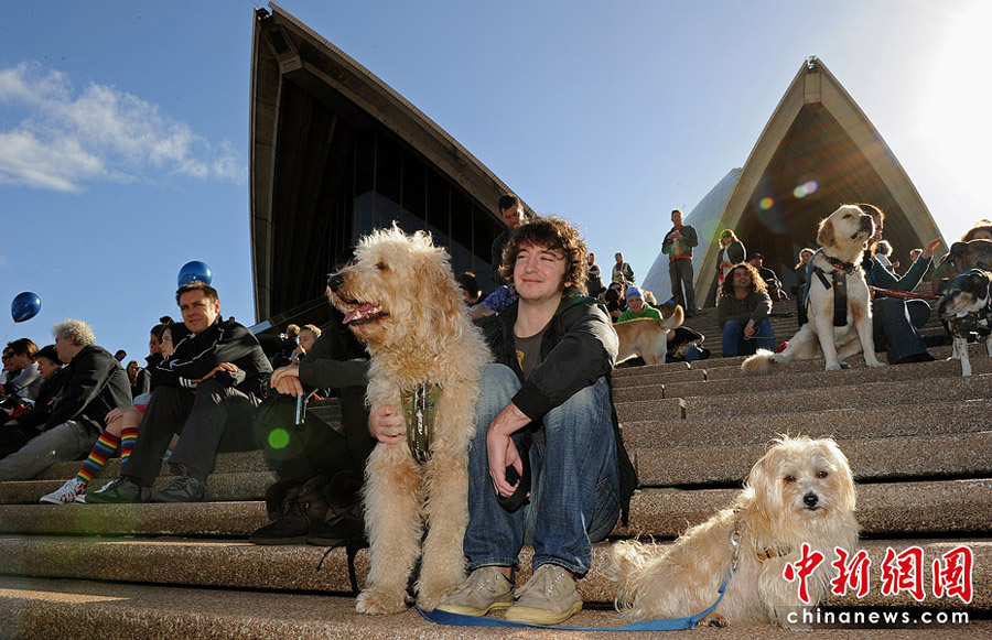 6月5日,澳大利亞悉尼歌劇院外舉辦了全球首場(chǎng)狗能聽懂的音樂會(huì),約有1000人帶著數(shù)百只愛犬在劇院前庭和階梯落坐,聆聽“狗的音樂”,整場(chǎng)音樂會(huì)全長(zhǎng)20分鐘。圖片來源:中國(guó)新聞網(wǎng)