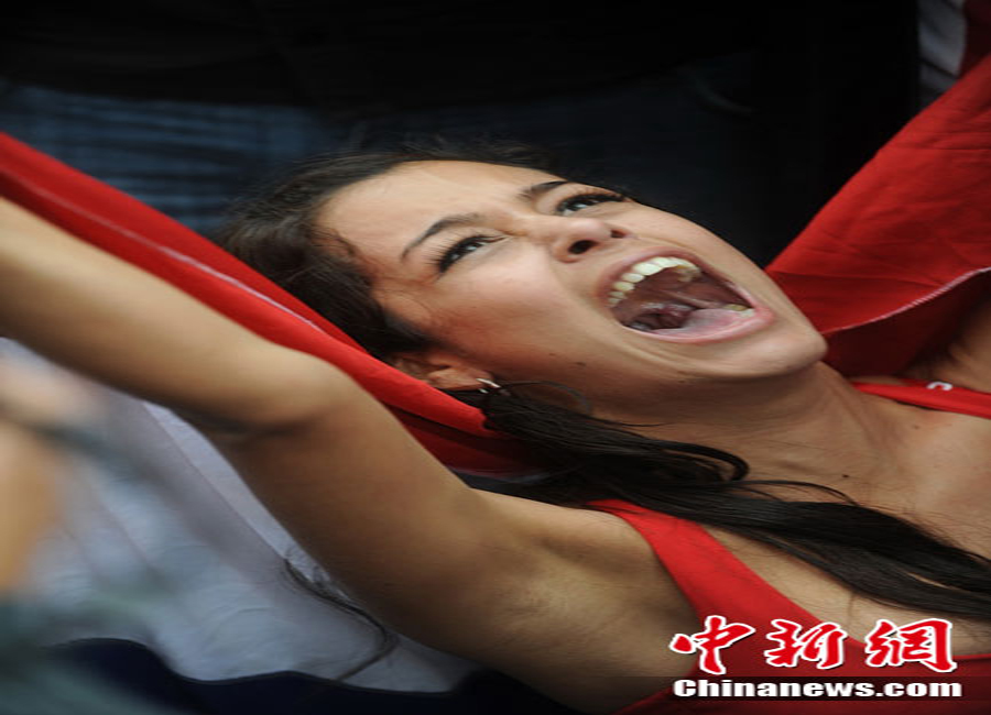 6月29日,巴拉圭點(diǎn)球大戰(zhàn)5-3擊敗日本。著名乳神女球迷拉里薩再度胸夾手機(jī)亮相,并與日本球迷同樂(lè),瘋狂慶祝盡顯激情狂野。