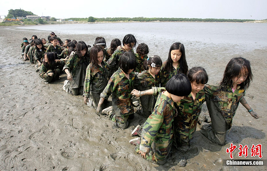 當地時間7月15日,來自韓國首都首爾的156名小學生參加了在安山市大阜島為期3天的軍訓夏令營。
