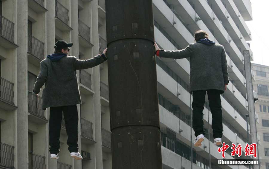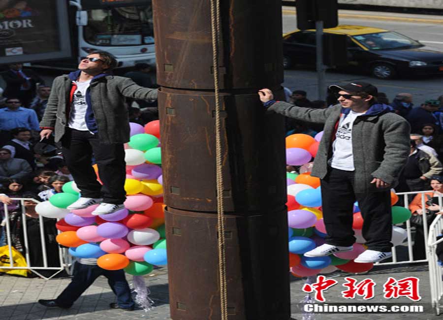 9月9日,智利著名的“魔術二人組”魔術師Jean Paul Olaverry和Nicolas Luisetti,在首都圣地亞哥街頭進行空中漂浮魔術。他們將在空中漂浮200分鐘以此來慶祝智利獨立200周年。