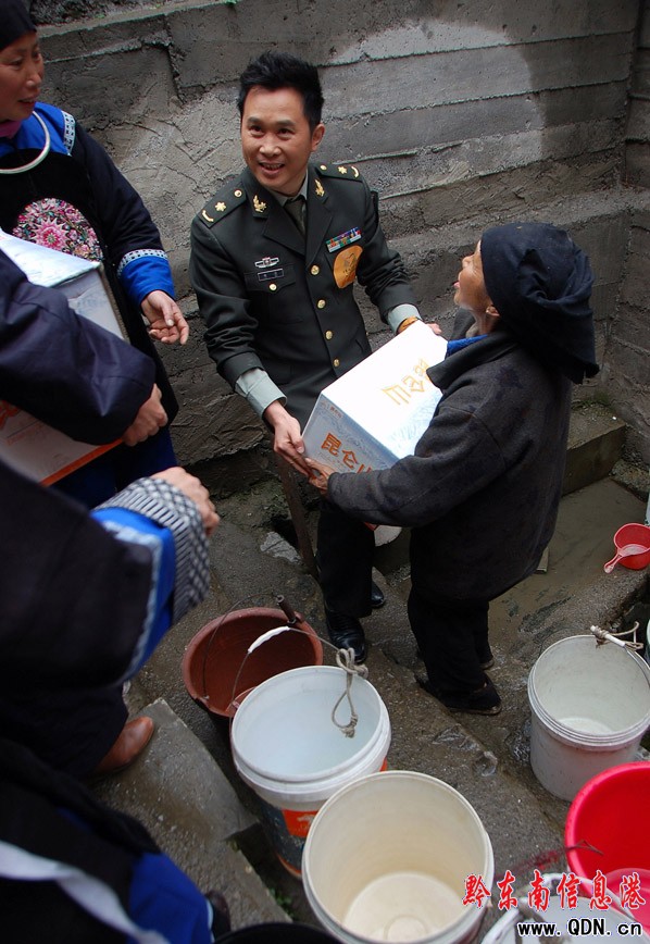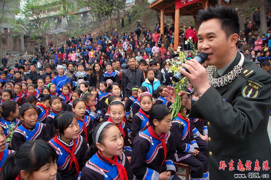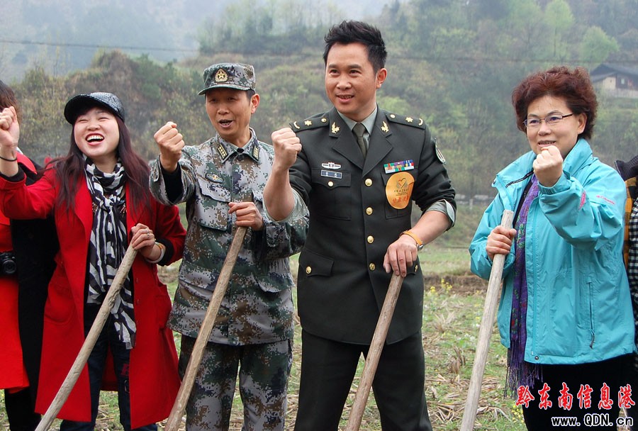 4月2日,國務(wù)院扶貧辦、中國扶貧基金會“甘霖行動”形象大使、二炮文工團青年演員金波率“甘霖使者”慰問團一行多名演藝明星及企業(yè)家朋友,奔赴貴州省黔東南州遭受旱災(zāi)最嚴重的三穗縣臺烈鎮(zhèn)寨頭村,給當(dāng)?shù)孛缱迦罕娝退⑺湾X、送歌聲。金波等慰問團成員還深入田間地頭,參與當(dāng)?shù)氐目购稻葹?zāi)建設(shè),并為群眾鼓舞抗旱士氣。(吳如雄)