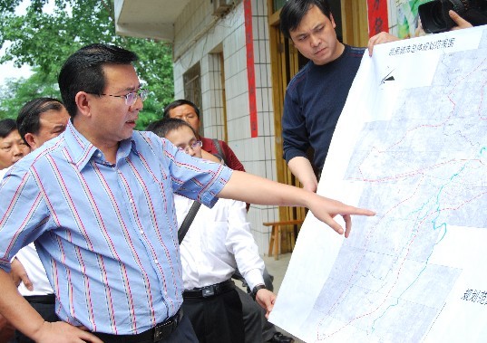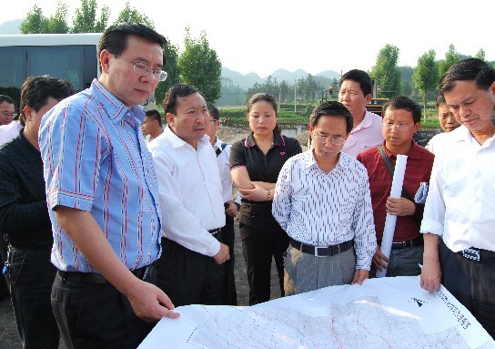 李飛躍一行首先來到下司鎮,仔細察看地形和下司主干道建設規劃圖。下司主干道擬修建開發集民族風情、風光觀賞、旅游休閑、房產開發為一體的規劃區。李飛躍指出:開發時,一定要注重環保。