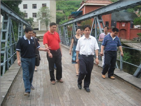 趙至敏一行首先視察了重安鎮(zhèn)三江壩蔬菜基地和新州鎮(zhèn)五里墩弟?chē)?guó)養(yǎng)殖場(chǎng),聽(tīng)取了有關(guān)人員關(guān)于生產(chǎn)、銷(xiāo)售等方面情況介紹,對(duì)基地和養(yǎng)殖場(chǎng)在把握市場(chǎng)商機(jī)走科技化、訂單式規(guī)模化生產(chǎn)模式取得的成就表示肯定。隨后,趙至敏一行來(lái)到重安江三朝橋和飛云崖景區(qū),聽(tīng)取導(dǎo)游關(guān)于三朝橋和飛云崖修建歷史和各種逸聞?wù)乒式榻B,并興致勃勃地實(shí)地參觀了鐵素橋、曲拱橋,與儒、道文化有機(jī)融為一體的飛云崖的大門(mén)牌坊、歷代文人留下的珍貴墨跡,參觀了貴州節(jié)日博物館豐富的藏品。