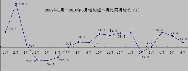 一、上半年工業生產基本保持平穩態勢。一是工業生產總量保持了平穩,沒有出現大的波動,前6個月各月度增加值總量均在2.5億元左右,不象上年一季度出現的大起大落;二是增長速度平穩,除2月份因春節有效開工時間減少出現陡降外,其他月份都很穩定,沒有出現陡升陡降,增幅的差異度不到50個百分點,而同的期差異度達到了100個百分點以上。
