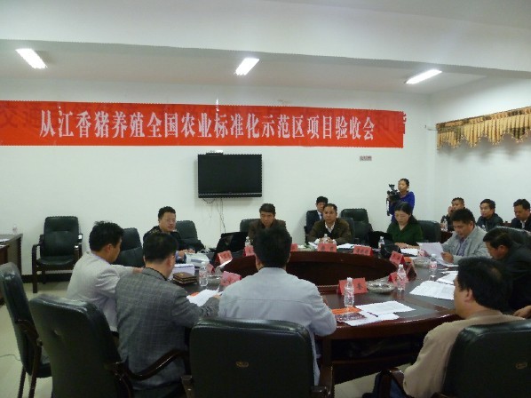 本港訊 (李穗渝)2010年11月11日,省質監局受國標委的委托,組織貴州大學、黔南州質監局、六盤水質監局、黔東南州農委等單位的專家,按照《農業標準化管理辦法》、《農業標準化示范區效果評價體系表》的要求,對從江香豬養殖標準化示范區標準化建設工作進行考核驗收,驗收組對示范區工作非常滿意,給予了很高的評價,成績達到優秀檔次。