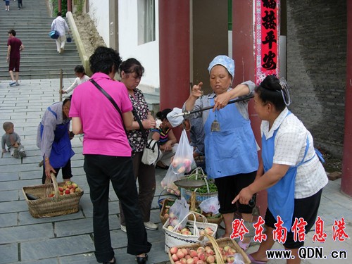 本港訊 (特約記者 石慶偉 攝影報道)近年來,劍河縣積極協調各項資金,加大岑松鎮溫泉景區320國道沿線經濟產業帶建設,因地制宜,發動群眾種植楊梅、金秋梨、板栗、桃子等經濟作物1200多畝,實現農民增收致富。圖為溫泉景區苗族婦女向游客兜售桃子。