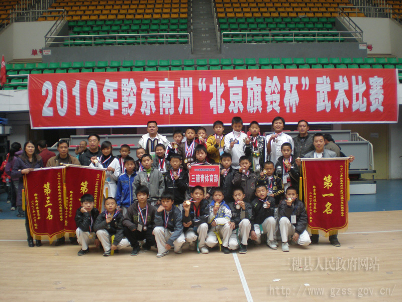 2010年黔東南州武術跆拳道比賽由黔東南州體育總會主辦,黔東南州社會體育管理中心和黔東南州武術協會承辦,于12月3日至5日在州體育館舉行,有來自全州16個縣市的17支代表隊300多名運動員參賽,三穗縣共派出28名運動員參加了比賽,在高手云集的比賽場上,運動員發揮出色,頑強拼搏,斗志昂揚,攻堅克難,越戰越勇,經過緊張激烈的角逐,三穗縣取得了參加歷屆全州跆拳道武術比賽取得的最好成績,創競技體育歷史新高。