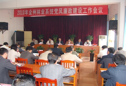 局黨組成員、紀檢組長陳永發作《加強黨性修養 強化作風建設 把反腐倡廉建設進一步引向深入》的工作報告,總結了2009年黨風廉政建設和反腐敗工作,對2010年全州林業系統反腐倡廉工作進行安排部署:一是加強監督檢查,推動科學發展重大決策部署的貫徹落實;二是加強作風建設,進一步抓好廉潔自律工作;三是加強行風建設,進一步解決損害林農利益的突出問題;四是加強案件查處,進一步加大查辦案件工作力度;五是深化改革創新,進一步推進源頭治理腐敗工作。