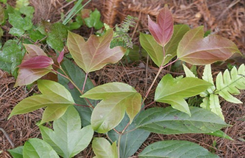 半楓荷(Semiliquidambar cathayensis),金縷梅科(Hamamelidaceae),半楓荷屬(Semiliquidambar)。半楓荷屬稀有種,國家二級保護植物,是1962年發現的新屬的模式種,現殘存于中國南部和東南部山區,因材質優良,旋刨性良好,天然分布受人為干擾嚴重,分布范圍越來越窄,保存的植株也較稀少,在雷公山保護區雖有分布記載,但從未采集到標本。