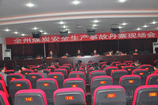 會議由州人民政府副秘書長羅鍵主持,州安監局總工程師周貴柏通報了合心煤礦冒頂事故救援情況,丹寨縣人民政府龍先金縣長作檢討發言。龍先金縣長在檢討中認真分析了該縣目前安全生產工作中存在的問題,表示要認真吸取“11·15”事故的教訓,認真落實安全生產管理責任制,狠抓各項安全措施的落實,加強隱患排查力度,切實加強煤礦管理,切實保護人民群眾的生命財產安全,創建平安和諧丹寨。丹寨縣委常委、縣紀委書記陳光洲通報了“11·15”事故問責處理情況。