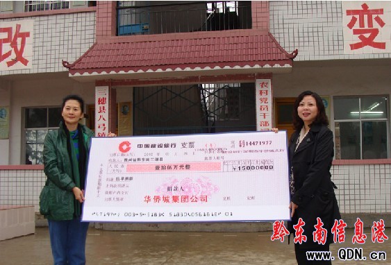 據(jù)黔東南州政府網(wǎng)消息 2010年3月30日,深圳華僑城集團(tuán)公司行政管理部副總監(jiān)宋臻女士一行給三穗人民送來了溫暖和愛心。當(dāng)了解到三穗縣旱情嚴(yán)重,很多居民飲水困難時,該公司千里迢迢蒞臨三穗縣檢查工作的同時,又為三穗縣捐贈15萬元,用于幫助旱情嚴(yán)重的老百姓度過難關(guān)。