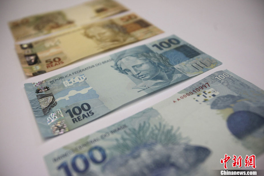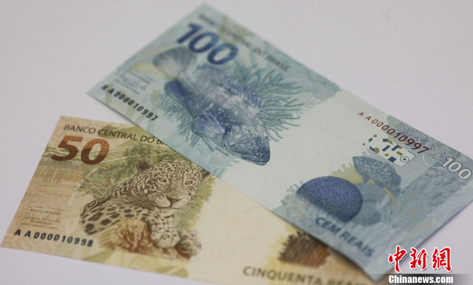 12月13日,巴西中央銀行發行了50雷亞爾和100雷亞爾兩種面值的新版紙幣。圖為巴西新版紙幣的照片。