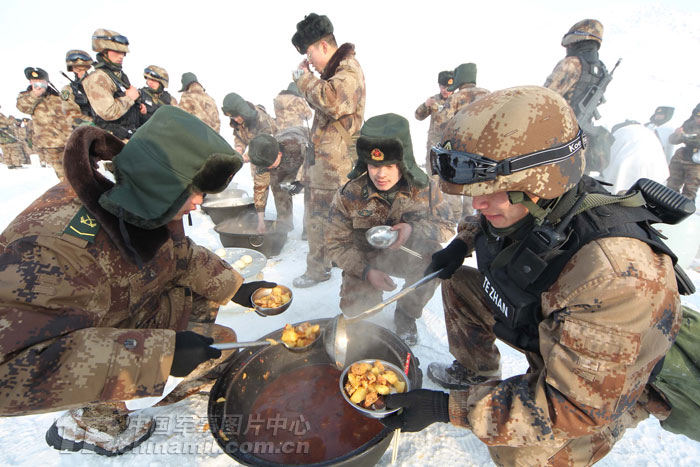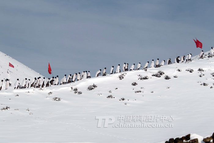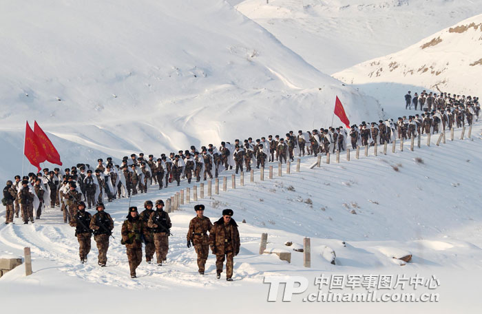 在全軍開訓(xùn)動(dòng)員的第一天,新疆軍區(qū)某高炮旅近日將部隊(duì)拉入天山腳下大山深處,利用冬季風(fēng)雪大、隱蔽難、行軍慢的等不利于作戰(zhàn)的因素,在借鑒以往經(jīng)驗(yàn)的同時(shí)研究制定新方案,使部隊(duì)整體素質(zhì)得到提升了。圖為新疆軍區(qū)某高炮旅特戰(zhàn)隊(duì)隊(duì)員在大山深處結(jié)合反恐訓(xùn)練組織拉練。