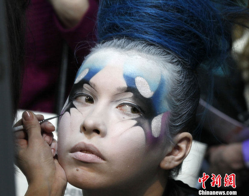 2011年2月9日,烏克蘭,2011化妝美發冠軍賽在基輔舉行,眾多化妝美發高手在臺上一決高低。