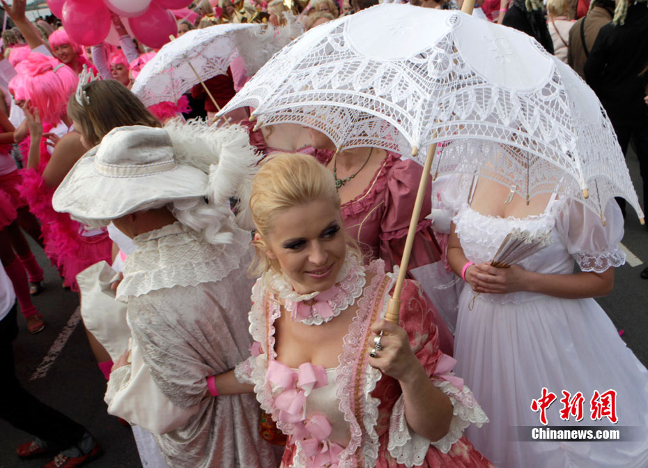 5月28日,在拉脫維亞首都里加,金發女郎參加“Go blonde!”節游行。本次游行旨在為殘疾兒童建造操場募款,吸引了數百名穿著粉色衣服的“金發女郎”參加,也有一些“金發男郎”加入游行。