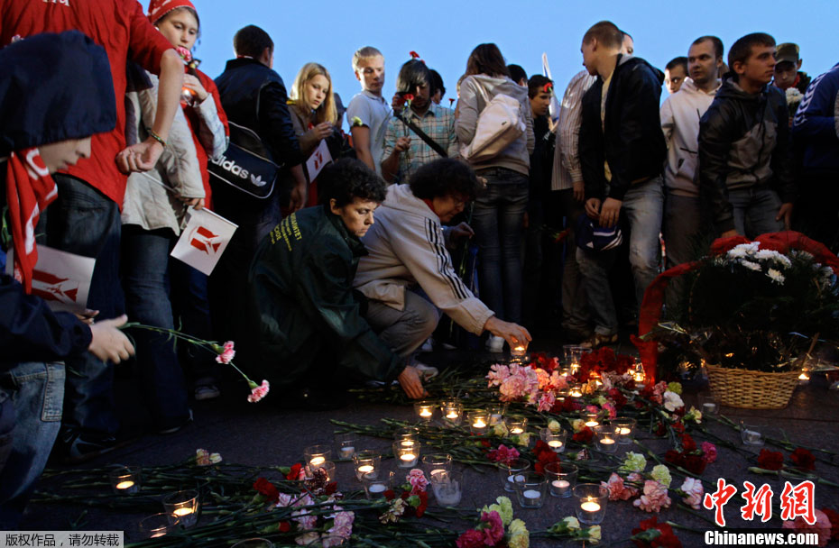 2011年6月22日,俄羅斯首都莫斯科,在克里姆林宮外的無名烈士墓前,市民和二戰老兵手持蠟燭和鮮花紀念“衛國戰爭”爆發70周年。1941年6月22日,德國法西斯突然閃擊前蘇聯,前蘇聯人民開始了艱苦卓絕的衛國戰爭,直到1945年5月2日柏林戰役結束。