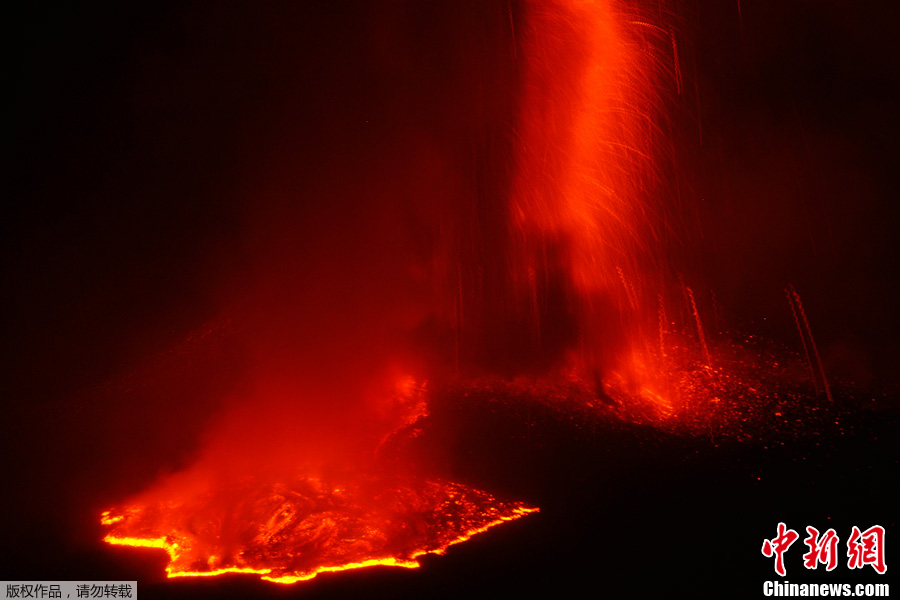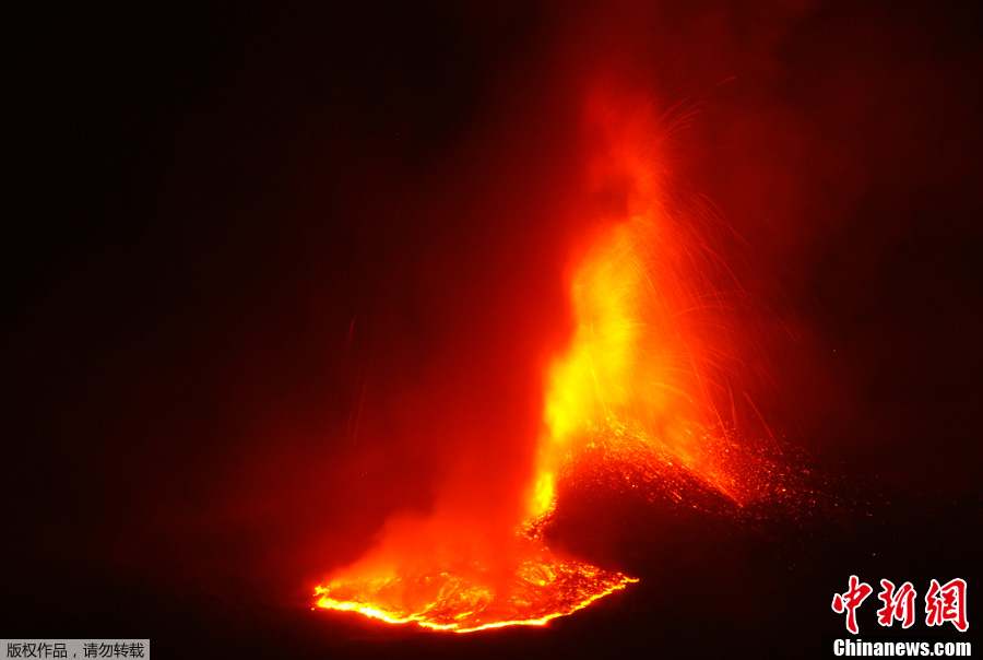 8月6日,意大利卡塔尼亞附近的埃特納火山噴發,熔巖隨之迸發,景象壯觀。埃特納火山是歐洲境內最高也是最活躍的一座火山。