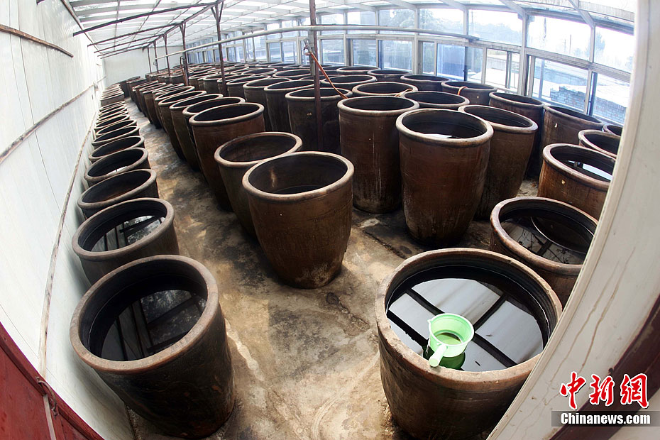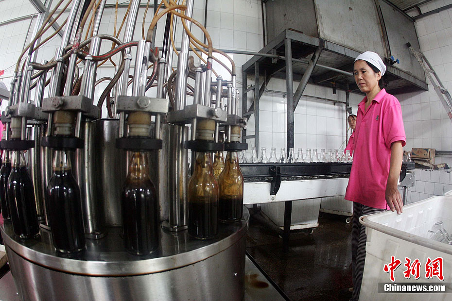 至今已有3000多年歷史的山西老陳醋近日引起社會(huì)的分外關(guān)注,8月9日上午,山西太原寧化府益源慶醋業(yè)為媒體開放釀造廠,證實(shí)其產(chǎn)品全部純糧釀造。山西省醋產(chǎn)業(yè)協(xié)會(huì)會(huì)長(zhǎng)曹文杰稱,兌醋實(shí)際上是民間百姓的一種通俗講法,從業(yè)內(nèi)講,不管配制食醋還是釀制食醋,都有勾調(diào)的過(guò)程,這是一個(gè)重要生產(chǎn)環(huán)節(jié)。曹文杰介紹,目前,山西每年產(chǎn)醋大約60萬(wàn)噸,全部是純糧釀造,其中能達(dá)到6度以上的老陳醋大概有10萬(wàn)噸,其余的也是完全按照國(guó)家有關(guān)標(biāo)準(zhǔn)添加防腐劑。中新社發(fā) 張?jiān)?攝