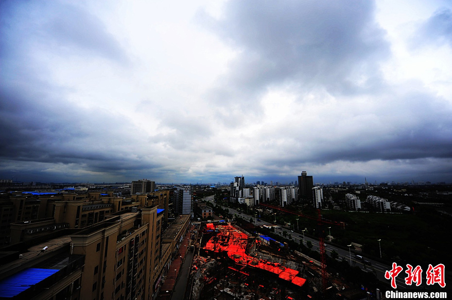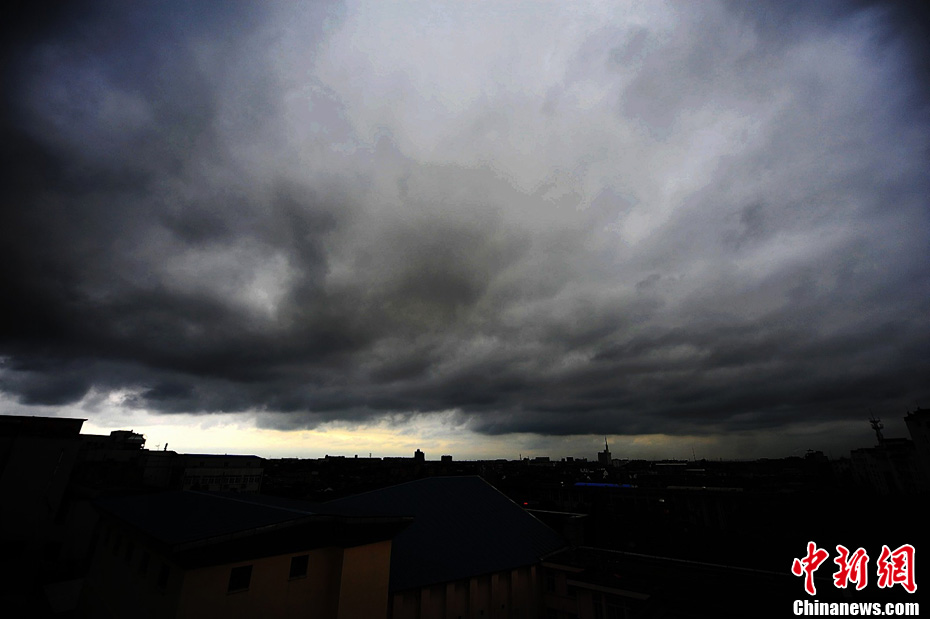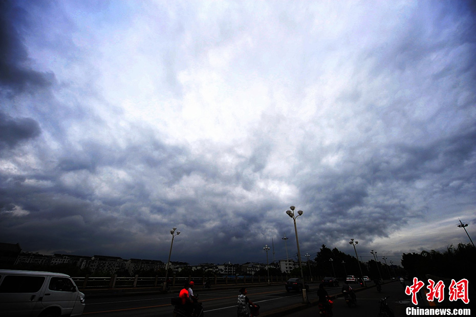 8月22日,江蘇揚州地區上空,云層與大地呈現“一線天”奇觀。中新社發 孟德龍 攝 圖片來源:CNSPHOTO