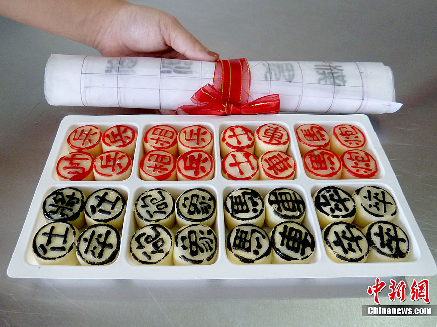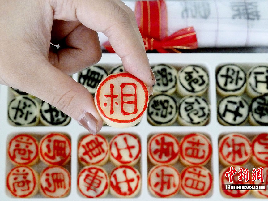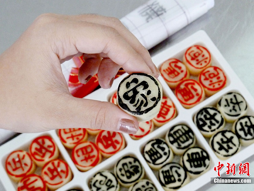 9月2日,一種可以邊下邊吃的象棋月餅在南京一蛋糕西點店亮相。據介紹,這種以時下流行的冰皮月餅制成的“象棋”口感酥軟滑爽,且低糖低脂。日式月餅盒內有32枚棋子、楚河漢界棋布、干凈透明油紙和一次性手套。中新社發 王路憲 攝 圖片來源:CNSPHOTO