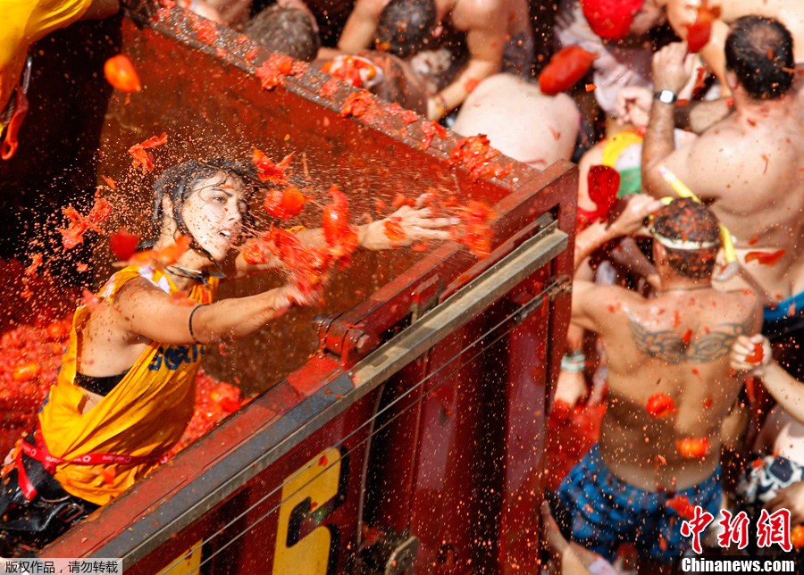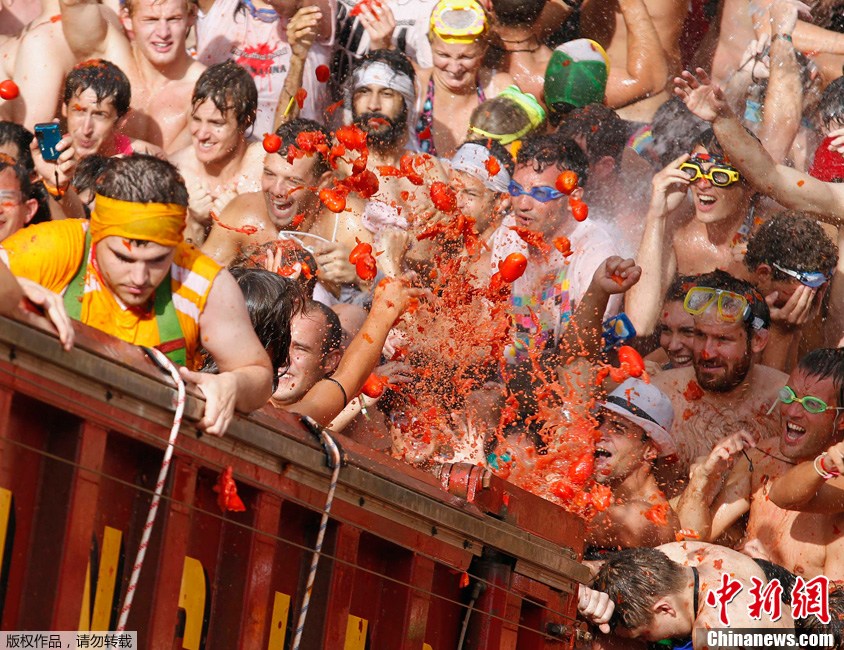8月31日,在西班牙東部小鎮(zhèn)布尼奧爾,世界最大規(guī)模的“番茄大戰(zhàn)”開打。“番茄大戰(zhàn)”源于1945年,于每年8月的最后一個星期三舉行。布尼奧爾小鎮(zhèn)的“番茄大戰(zhàn)”在全球的規(guī)模和影響力最大,現已經成為該鎮(zhèn)的招牌項目。