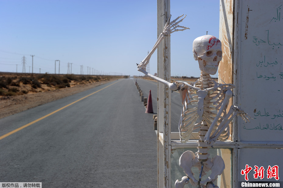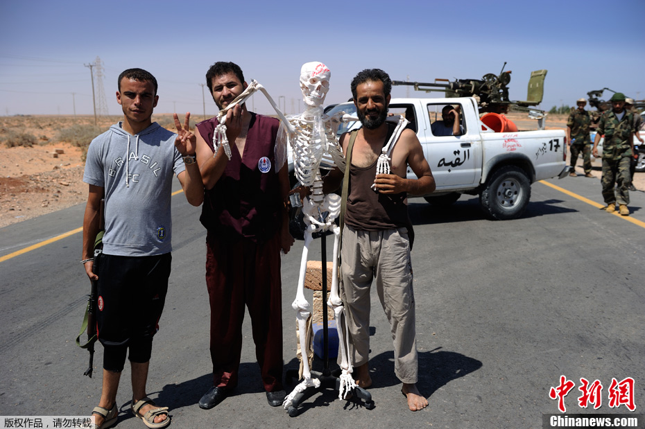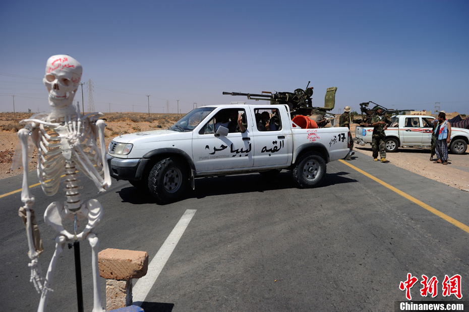 9月1日,在利比亞蘇爾特東部地區的一處公路關卡,反對派將一具骷髏擺放在公路上,這具骷髏代表著逃亡的卡扎菲。當天,反對派武裝發言人戈加說,從1日起算,給駐守蘇爾特的忠于卡扎菲的守軍一周的時間投降。