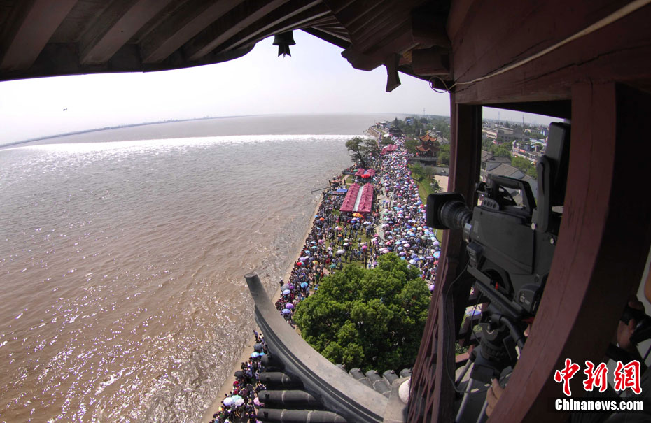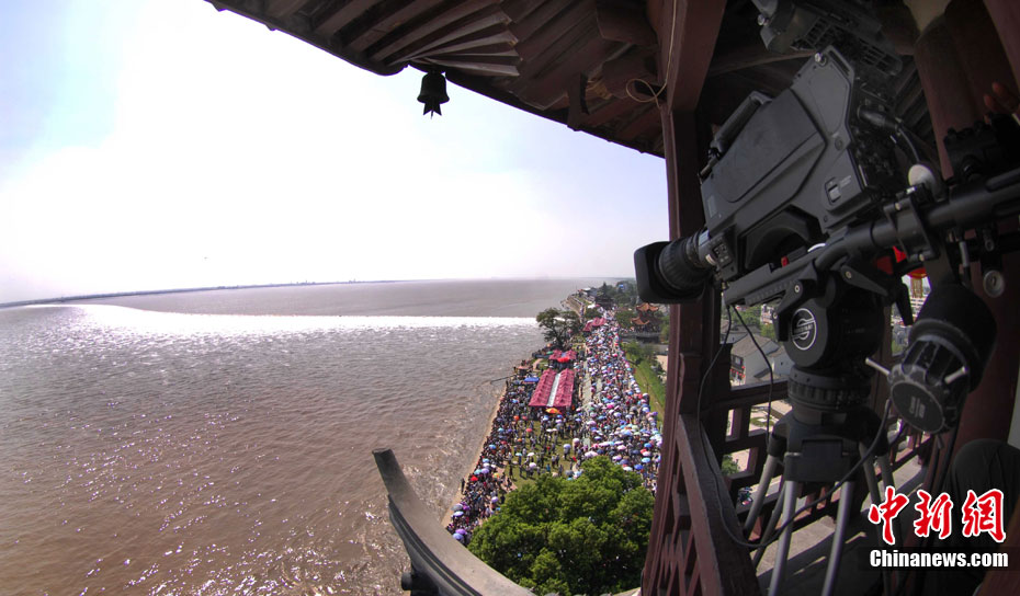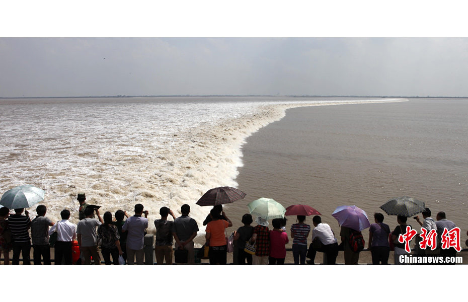 9月15日(農(nóng)歷八月十八“潮神生日”)迎來(lái)了第十八屆中國(guó)國(guó)際錢(qián)江(海寧)觀潮節(jié)的到來(lái)。據(jù)水文站數(shù)據(jù)顯示,當(dāng)天的大潮達(dá)到1點(diǎn)9米,僅鹽官觀潮景區(qū)觀潮人數(shù)就達(dá)到7萬(wàn)余人。下午1點(diǎn)10分,尤如萬(wàn)馬奔騰的一線(xiàn)大潮在央視直播的直升飛機(jī)的伴隨下,大潮一路猛進(jìn),讓游客大飽眼福,形成江潮、傘潮兩相涌的壯觀景象。中新社發(fā) 王超英 攝 圖片來(lái)源:CNSPHOTO