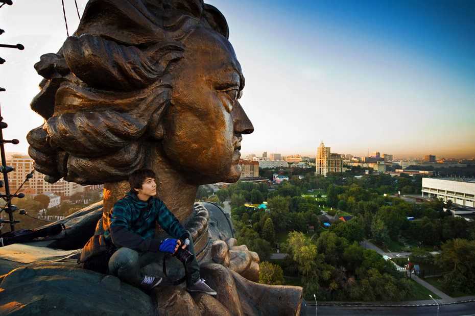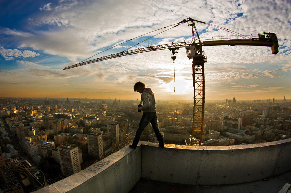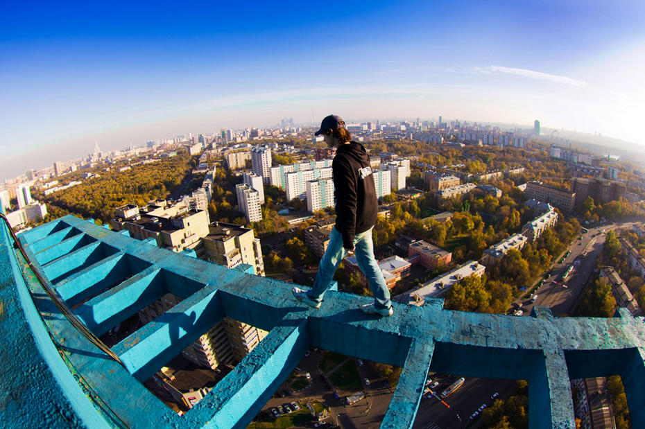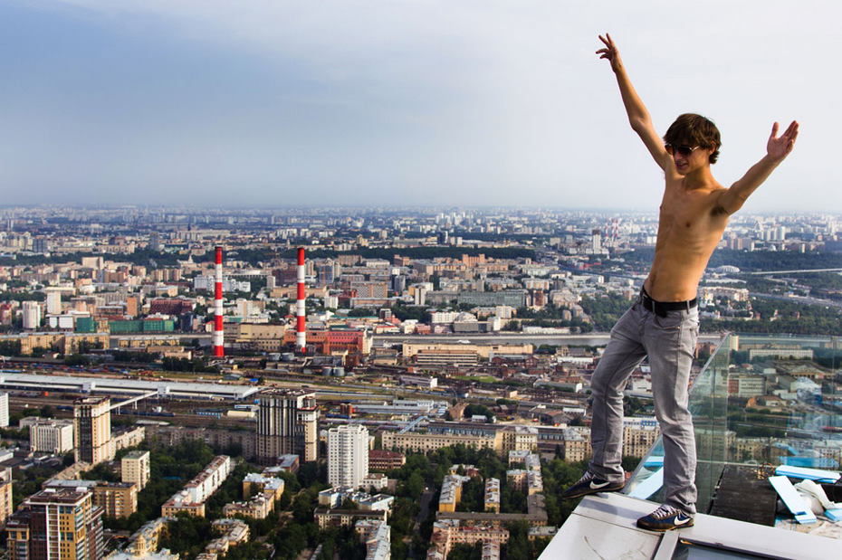 18個月前俄羅斯少年 Marat Dupri買了一臺佳能相機。為了拍攝與眾不同的照片,這位19歲的少年和他的朋友們一起爬上了莫斯科最高的山頂去采風,有時他們還不得不想著法兒地繞過保安人員。為了拍攝這些令人傷腦筋的照片,他們在沒有保護措施的情況下,獨自小心翼翼地站立在高高的建筑邊緣。