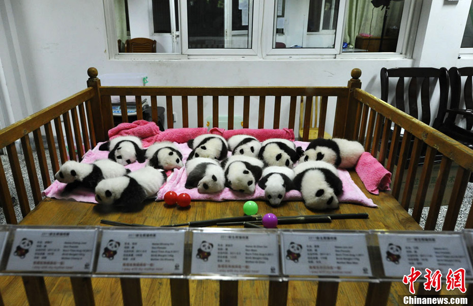 今年在保證“種群質(zhì)量”優(yōu)先的前提下,成都圈養(yǎng)大熊貓繁育再獲豐收,共繁育成活大熊貓8胎12仔。9月26日,12只新生大熊貓寶寶集體亮相成都大熊貓繁育研究基地太陽產(chǎn)房。安源 攝