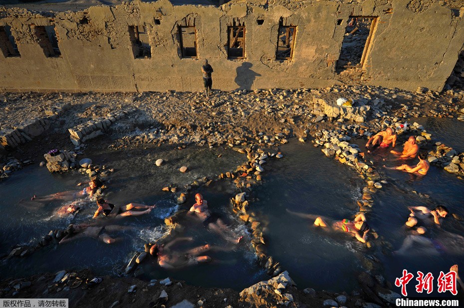 當(dāng)?shù)貢r(shí)間10月1日,在西班牙北部耶薩(Yesa)村落的泰耶爾馬斯(Tiermas)一處廢棄的古代大浴場(chǎng)里,人們?cè)跍厮杏媚喟透采w全身享受泥浴。耶薩地區(qū)在每年秋季時(shí)分水位達(dá)到最低點(diǎn),是適宜泥浴的時(shí)節(jié)。