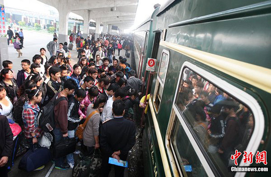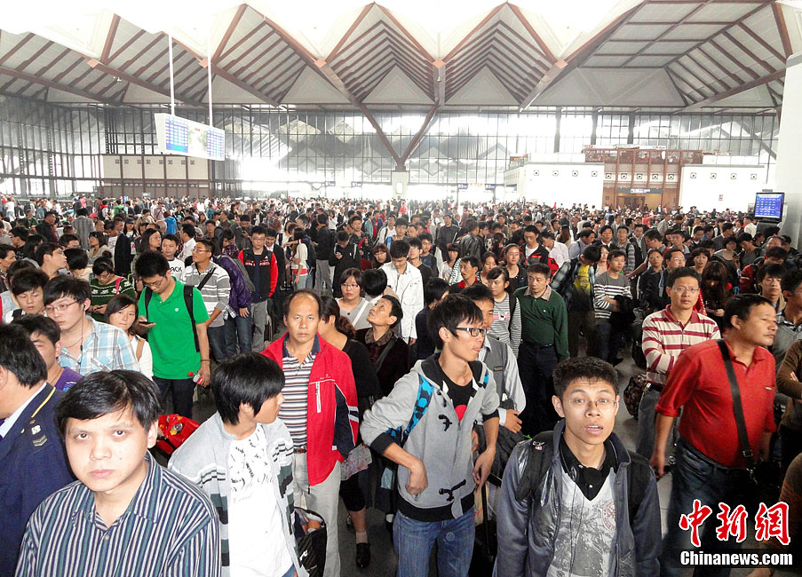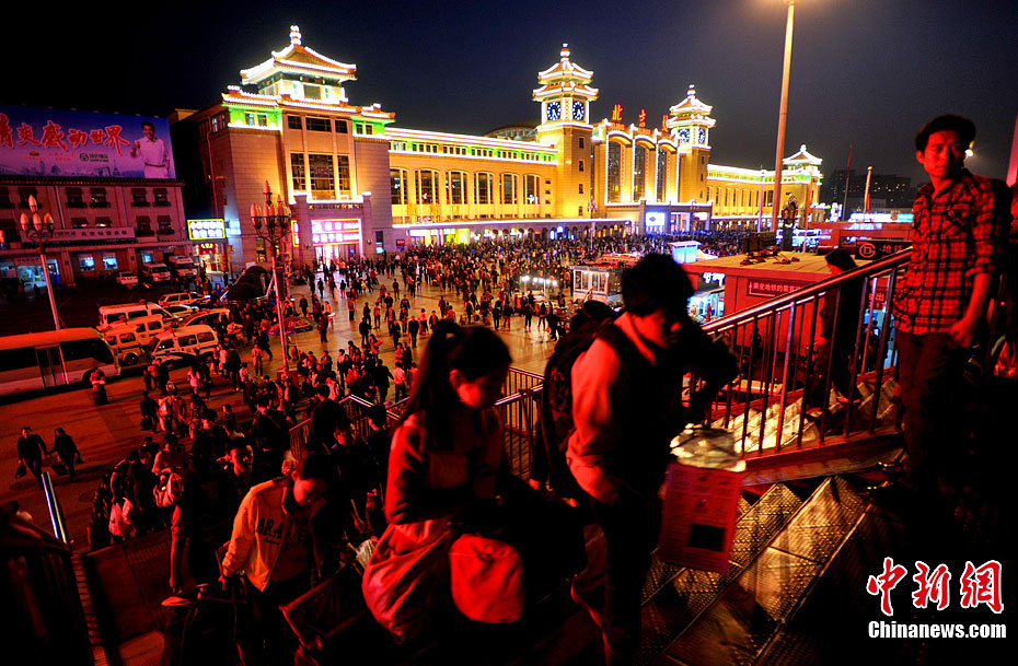 10月6日,北京火車站返程客流開始增多。國慶黃金周即將結束,鐵路部門表示,今明兩天,全市鐵路將迎來返程客流高峰,預計每天將有近30萬人集中返京。中新社發 李文明 攝 圖片來源:CNSPHOTO