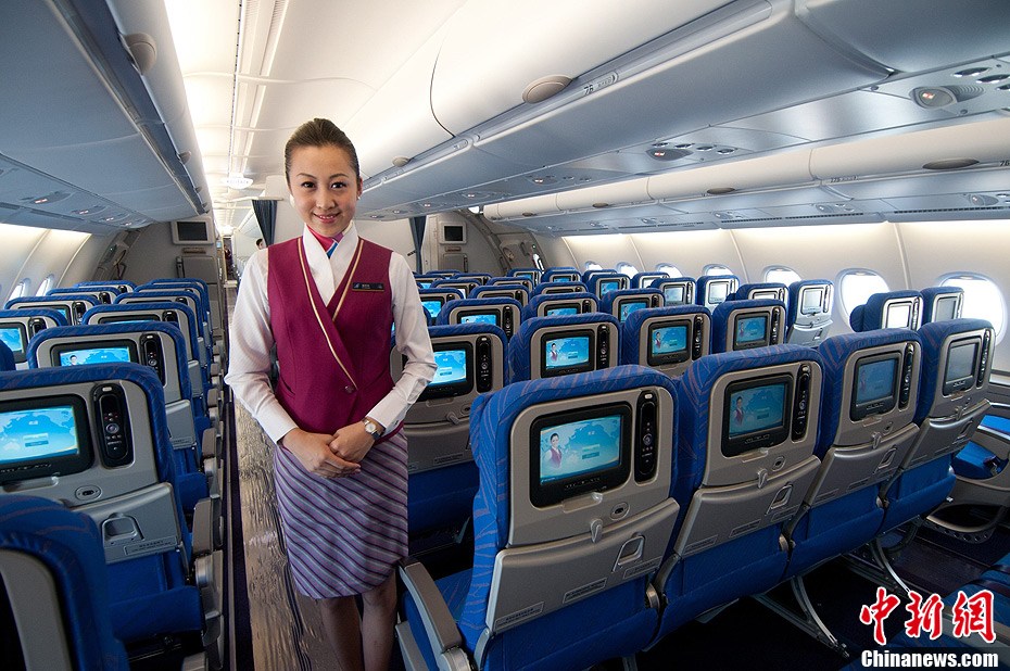 10月15日上午10點25分,中國購買的首架空客A380飛機抵達北京首都機場,正式交付南方航空公司。該飛機將于10月17日正式首航,從北京飛往廣州。圖為南航空姐從機艙中走出。中新社發 石巖 攝