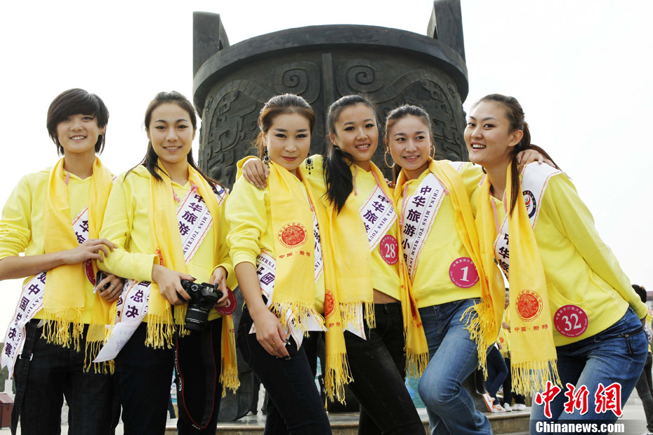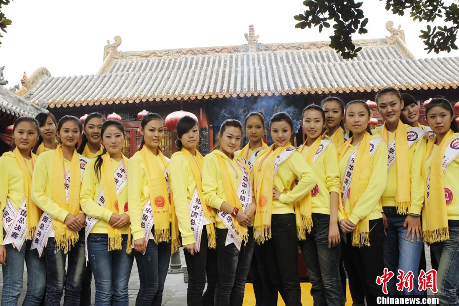 10月20日,河南鄭州,來自全國各地的32名中華旅游小姐選手們齊聚河南新鄭黃帝故里,拜謁人文始祖黃帝,祈福美好生活,傳播旅游文化,詮釋東方神韻。中新社發 王中舉 攝