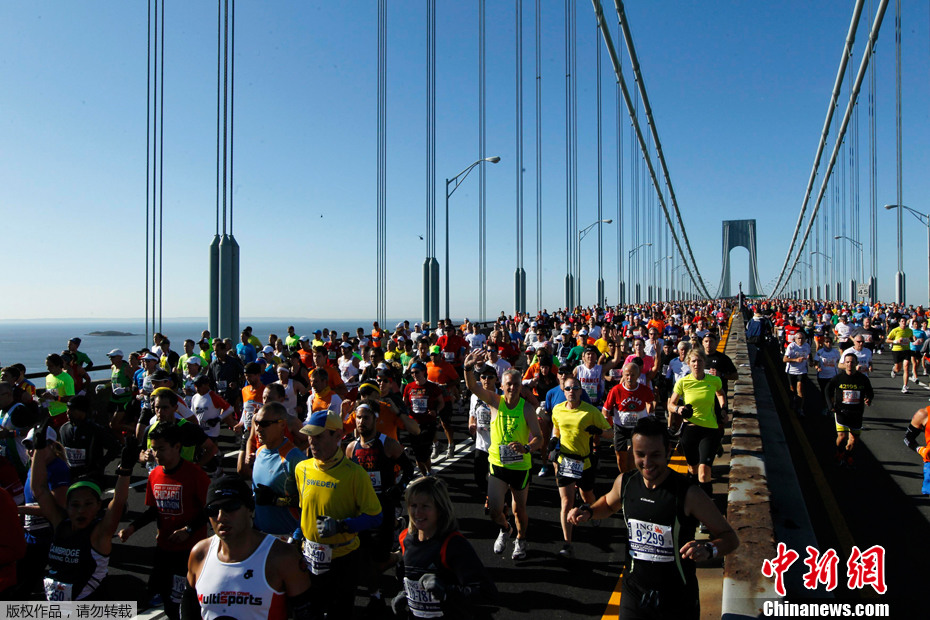 11月6日,紐約馬拉松比賽鳴槍開炮。今年的比賽報名人數達到47000人,刷新了2010年的45350人的紀錄。紐約馬拉松的聲譽僅次于波士頓馬拉松,創辦于1970年,每年11月初舉行,參賽者最多超過10萬人。參賽者通過紐約大吊橋時連橋身都震動,場面非常壯觀。