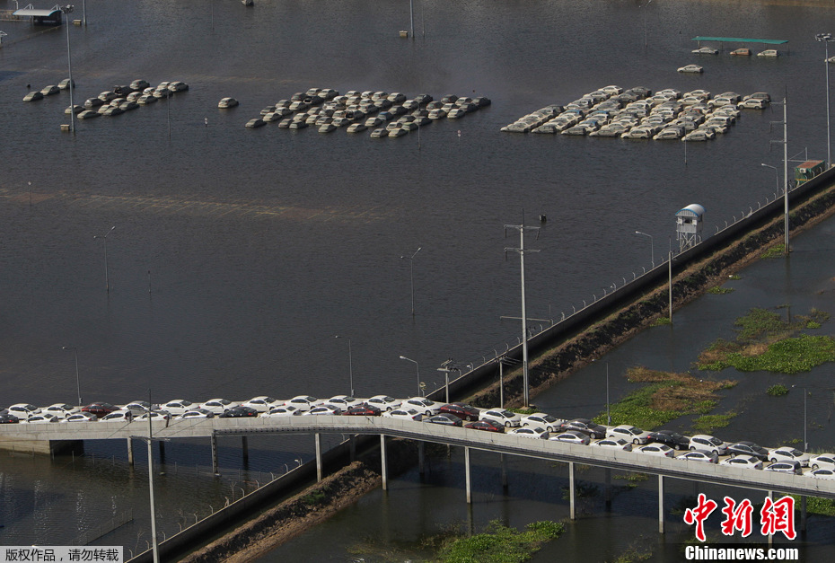 11月22日,泰國大城府洛察納(Rojana)工業區的本田汽車工廠,覆滿污泥的汽車停放在場地上。這場泰國半個世紀以來最嚴重的洪水已逐漸消退,洪災已造成至少600人喪生,工業和制造業損失數額以億美元計,預計洪水還將對泰國經濟增長造成1個百分點左右的影響。