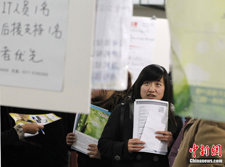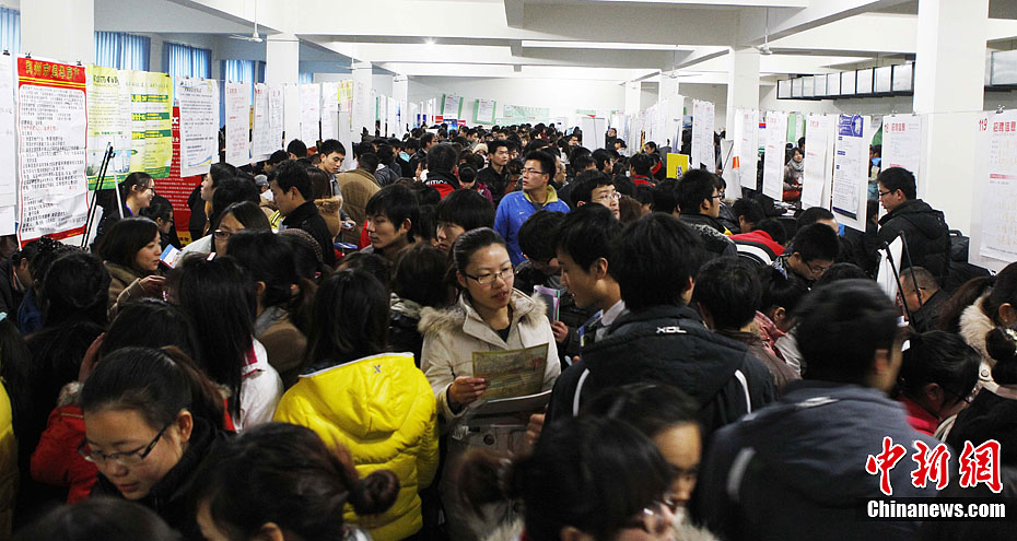 12月9日,河南鄭州,大學(xué)生在招聘會上尋找自己合適的崗位。當(dāng)日,河南省民辦高校2012年畢業(yè)生供需見面會在鄭州科技學(xué)院圖書館拉開大幕。本次招聘會提供就業(yè)崗位超萬個,來自全省10余所民辦高校約萬名畢業(yè)生參加了當(dāng)天雙選會。臨近畢業(yè),不少應(yīng)屆畢業(yè)生在人潮中苦苦追尋適合自己的一份工。面對日漸嚴(yán)峻的就業(yè)形勢讓,希望、欣喜、迷茫……留在了大學(xué)生求職者的臉上。中新社發(fā) 王中舉 攝