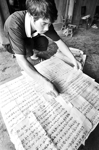 錦屏文斗村村民整理錦屏文書